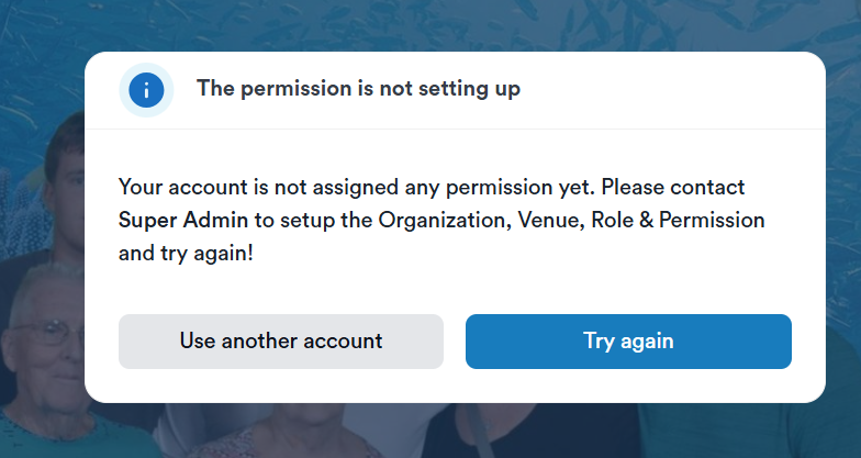 - Your account is not assigned any permission yet