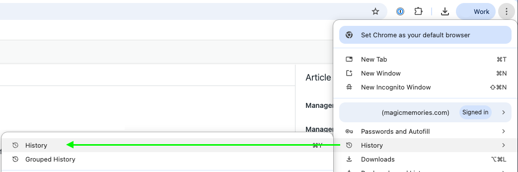 - Go to History and then History again