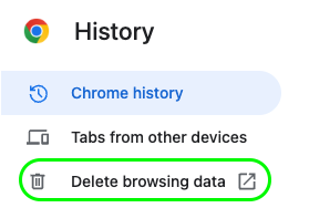 - On the left, choose 'Delete Browsing Data'.